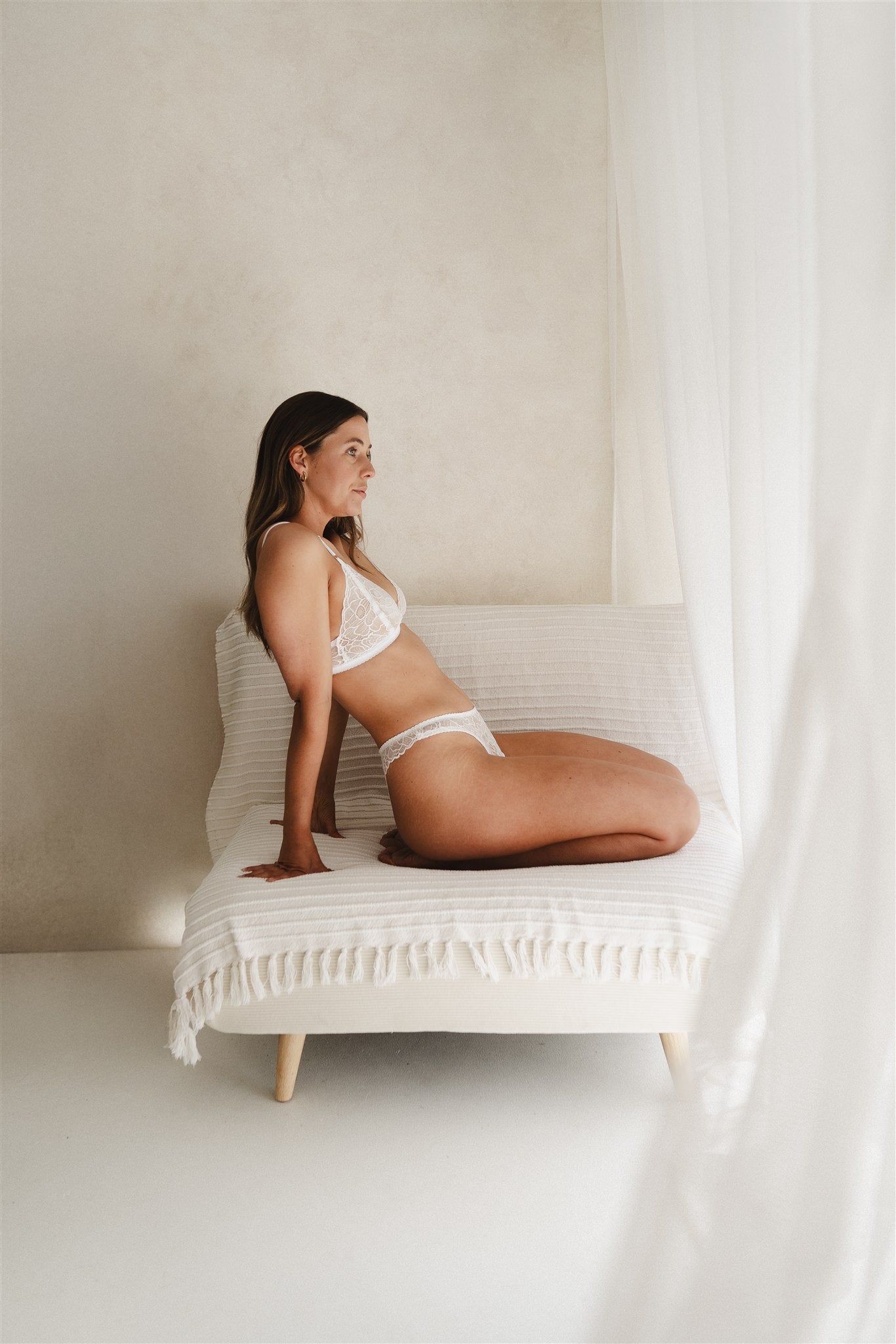 Rosalie is crafted from a soft and stretchy lace that moves with you, arguably the comfiest set in our Bridal collection.